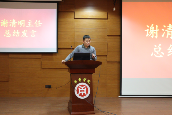 谢清明老师在大会上做总结发言,他首先代表学院对受表彰的先进个人、先进集体表示热烈祝贺,并对传院本次“文明校园我先行”主题教育月活动进行了总结。谢清明老师指出,本次活动的目的,是为了培育和践行社会主义核心价值观,提高大学生文明素养、规范行为举止,营造良好的文明校园氛围,推动学校形成厚重的校园文化积淀、清新的校园文明风尚和高雅的育人环境,促进优良学风的形成。从活动实施的整体情况来看,基本上达到了预期目的,涌现出了一批热爱学习、文明守礼、乐于奉献的先进典型,发挥了模范带头作用。