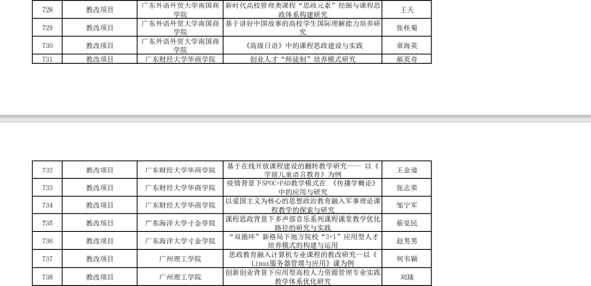 根据《广东省教育厅关于开展2020年度广东省本科高校教学质量与教学改革工程项目申报推荐工作的通知》《广东省教育厅关于开展2020年度省高等教育教学改革项目推荐工作的通知》安排,经学校遴选推荐、省教育厅审核,现将2020年度广东省教学质量与教学改革工程拟立项项目予以公示,详细名单见附件。