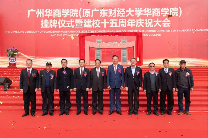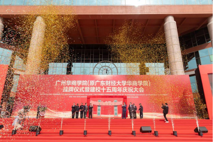 桃李满园贺华诞,百年大业铸辉煌。12月26日,William威廉官网(原广东财经大学华商学院,以下简称华商学院)挂牌仪式暨建校十五周年庆祝大会在学校中央图书馆广场举行。大会由执行校长郭银华主持。