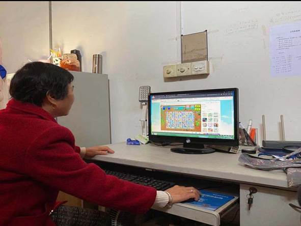 小小的单间里,充满了生活气息。门后挂着洗好的衣物、漱口杯等生活用品错落的摆放在一张陈旧木桌上、屋子中间一张窗帘布隔开了睡觉和休闲的地方……侯奶奶正在电脑前玩4399里面的一款叫“蝴蝶连连看”的小游戏,平时空闲时她都会玩一会游戏打发时间。眼前的电脑,是侯奶奶捡学校不要的,连着教学楼的网络,也不用交额外的费用。除此之外,房间里还有一台液晶电视机、一个宿舍衣柜、简易的小沙发,其中大部分家具都是这些年来他俩各种“废物利用”得来的。