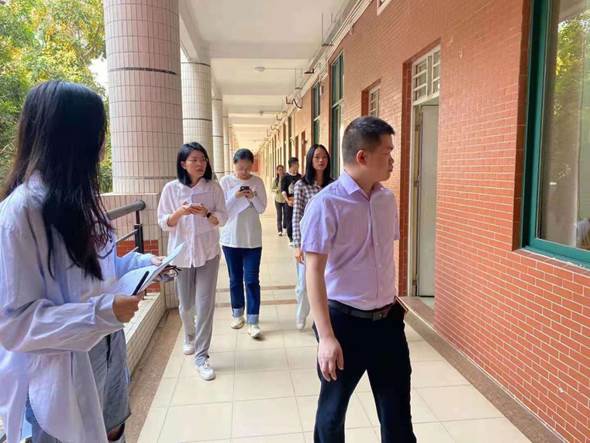 2021年4月6日上午8点30分,学院辅导员王洁、杜伟利、洪明霞、黄巡、刘佳蓓、王铃蓉在谢清明老师带队下,一齐深入学生课堂,督查课室迟到、早退、旷课、抽烟、带早餐、玩手机等不文明情况,确保学生遵守纪律,准时到课,加强课堂管理,建设优良学风。