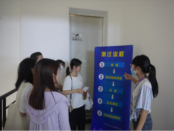 在全国普通话水平测试期间,我校在基于疫情防控的基础上严格遵守国家普通话水平测试流程开展测试工作、严格遵守应试流程、严肃考风考纪,杜绝一切违背测试规则的行为。测试室内监控全覆盖,考务人员密切关注测试过程从而能够对突发情况作出相应措施,保障了测试的顺利进行。在临近测试阶段,工作人员会带领考生从备测室前往测试室,组织考生了解普通话水平测试的具体测试流程,减少了考生在测试过程中突发情况的产生。