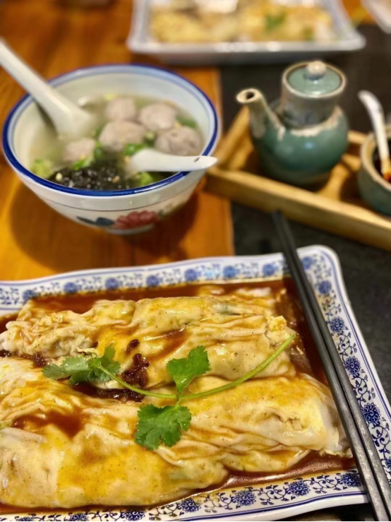 春荣用后半生用心做好一条肠粉的态度,更多的则是体现了他走过半生风雨后的通透与坦然。从书生到被迫卖力养家,从商贾到每日在厨房劳作,他从不气馁,诚然,这份精神早已超脱了肠粉技艺本身的高度。那天与春荣告别之际,我向询问的最后一个问题是“如何把控潮州肠粉的味道。”春荣简单地告诉我:“一百个人尝一条肠粉就是一百种味道,人生也一样。”