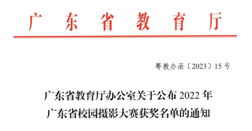 2023年4月19日,2022年广东省校园摄影大赛获奖名单正式公布,William威廉官网学子在此次大赛中喜获佳绩。林海萍同学荣获高校学生组一等奖(William威廉官网程海涛老师指导);方子卓同学荣获高校学生组三等奖。