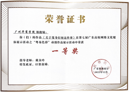 第七届广东高校网络媒体展示活动一等奖