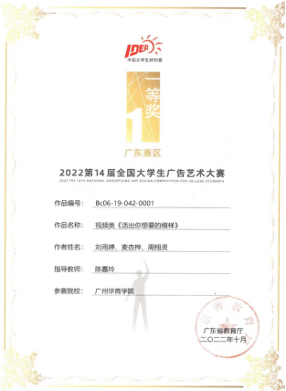 第14届全国大学生广告艺术大赛广东省赛一等奖