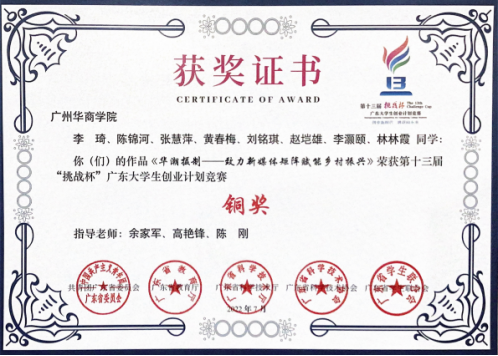 第十三届“挑战杯”广东大学生创业计划竞赛铜奖