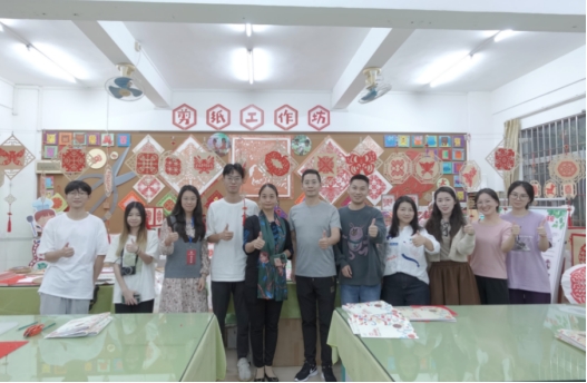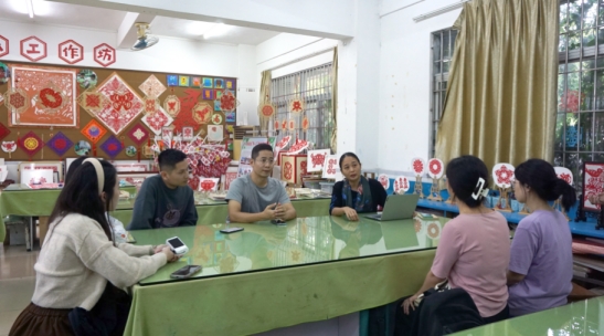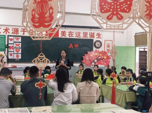 师生与何丹凤老师交流剪纸艺术