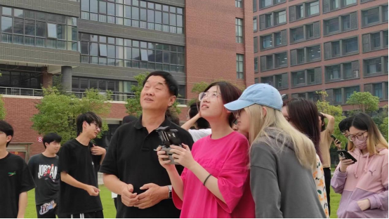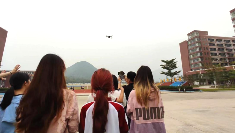 学生模拟操作熟练后,马保印教授用个人的大疆御Air2无人机,让学生在四会校区操场,体验真机的飞行,顺利完成了教学任务,得到了学生的一致好评。