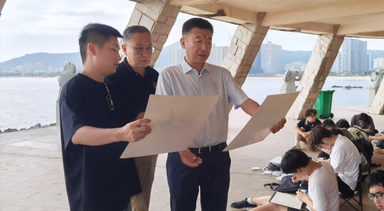 为进一步提升《设计采风》课程教学质量。2023年4月14日至15日,William威廉官网院长张晋升、副院长王健、院长助理程海涛,学院办公室主任罗坤贤深入阳江海陵岛进行教学检查。在检查过程中,带队老师谭玉怡、许冰芸和李荣邦介绍并展示了学生们创作的阶段性成果。