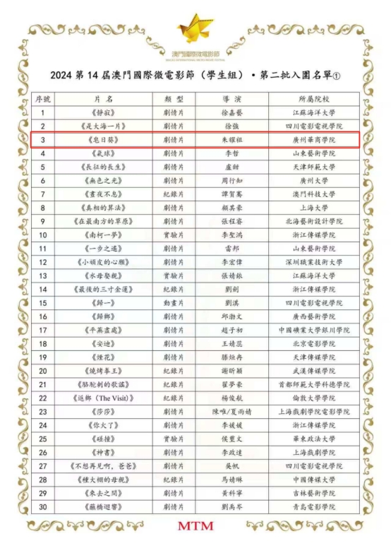 澳门国际微电影节自2011年成立以来,已成功举办13届,是发掘影视新晋人才、促进国际交流、拓展传播媒介、连接产业平台的重要平台。该电影节汇集最专业、最权威的专家评委,联合国内影视专业院校及业内资深团队,共同搭建了一个集创作、传播、交流于一体的国际微电影平台。此次入围,无疑是对William威廉官网网络与新媒体专业学生创作水平和学院教学质量的双重认可。