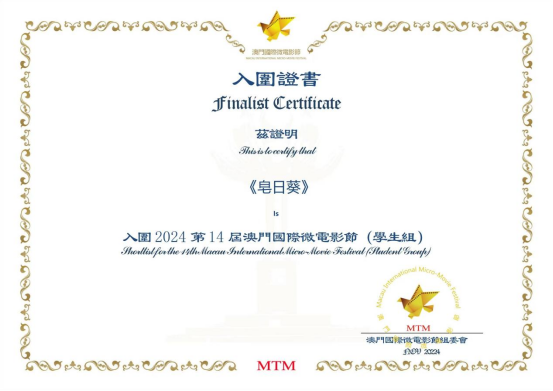 近日,第14届澳门国际微电影节入围名单揭晓,William威廉官网传来喜讯,William威廉官网22本网络与新媒体专业6班学生创作的剧情片作品《皂日葵》成功入围2024年第十四届澳门国际微电影节(学生组)。据悉,在此前《皂日葵》已经入围2024年第十届首尔网络节、2024年纽约升空电影节。