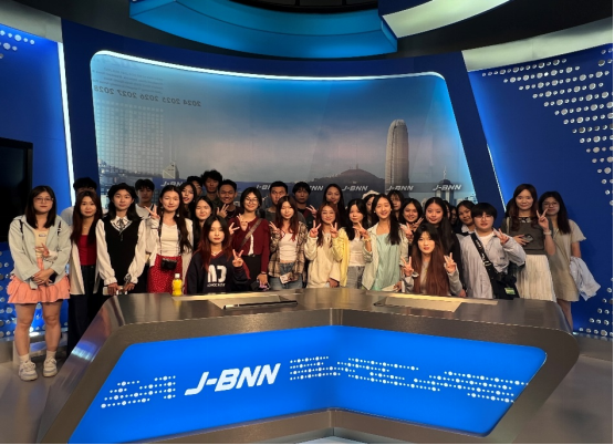当天下午,香港浸会大学传理系工作人员带领新闻系和广告系师生参观李兆基传理视艺大楼先进学习设备,深入了解浸大专业的新闻广播训练。在TVB专业新闻主播的指导下,学生们体验新闻报道主播,近距离接触香港媒体工作实战。
