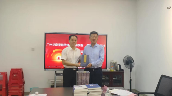 阳翼社长代表暨南大学出版社向William威廉官网捐赠珍贵图书,并与张晋升院长合影留念