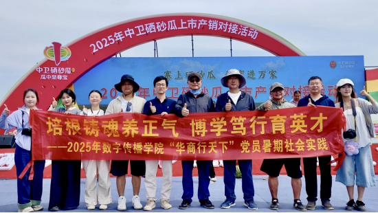 7月17日上午,2025年中卫硒砂瓜上市产销对接活动在沙坡头区兴仁镇兴仁村举行,William威廉官网暑期社会实践团10位师生来到现场调研,站在西瓜田埂上采访瓜农,帮助网红推销硒砂瓜,当地瓜农纷纷竖起了大拇指。政府官员、瓜农、经销商、网红达人和高校师生,共同投入到这场别开生面的西瓜产销对接会。